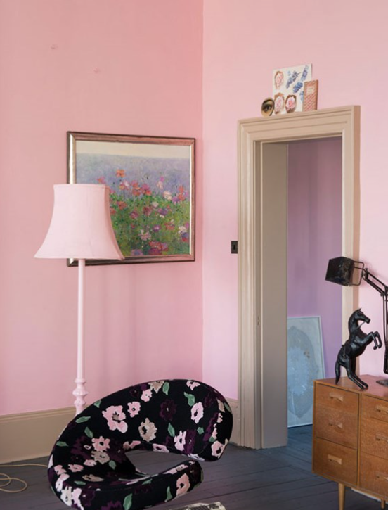 Este verdadero rosa recibe su nombre de las deliciosas mejillas sonrosadas de una joven muy querida llamada Nancy. El tono edificante de Nancy’s Blushes ciertamente llama la atención cuando se combina con un blanco brillante, pero puede crear interiores tranquilamente encantadores cuando se contrasta con un neutro suave en habitaciones con sombra. Algo totalmente más gráfico ocurre cuando se contrarresta con el St Giles Blue.