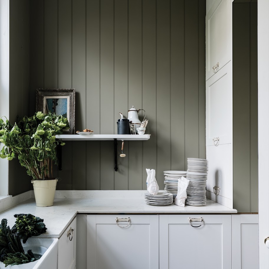 Treron es una versión verde oscuro del clásico Pigeon de Farrow & Ball, que toma su nombre de un género de plumas verdes de la familia de las palomas. Aunque es tradicional, Treron es perfecto para casas modernas donde se utilizan muchos materiales naturales o como acento para el gris francés y nuestros neutros tradicionales.